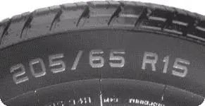 The tyre size below is 205/65 X 15. Another example of tyre size is 265/70 R17